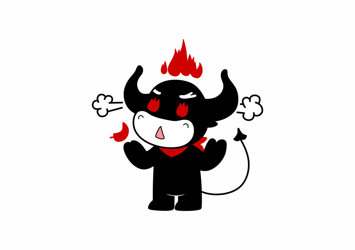 Introduction:火山小牛魔是一個(gè)牛肉干的品牌,名稱直觀來看,腦海里第一出現(xiàn)的應(yīng)該是小小Q版牛魔王的造型。有點(diǎn)呆/有點(diǎn)搞怪的性格,考慮到品牌的傳播性,知物設(shè)計(jì)在造型上盡可能簡(jiǎn)約,色彩醒目,更加有利于傳播和記憶。