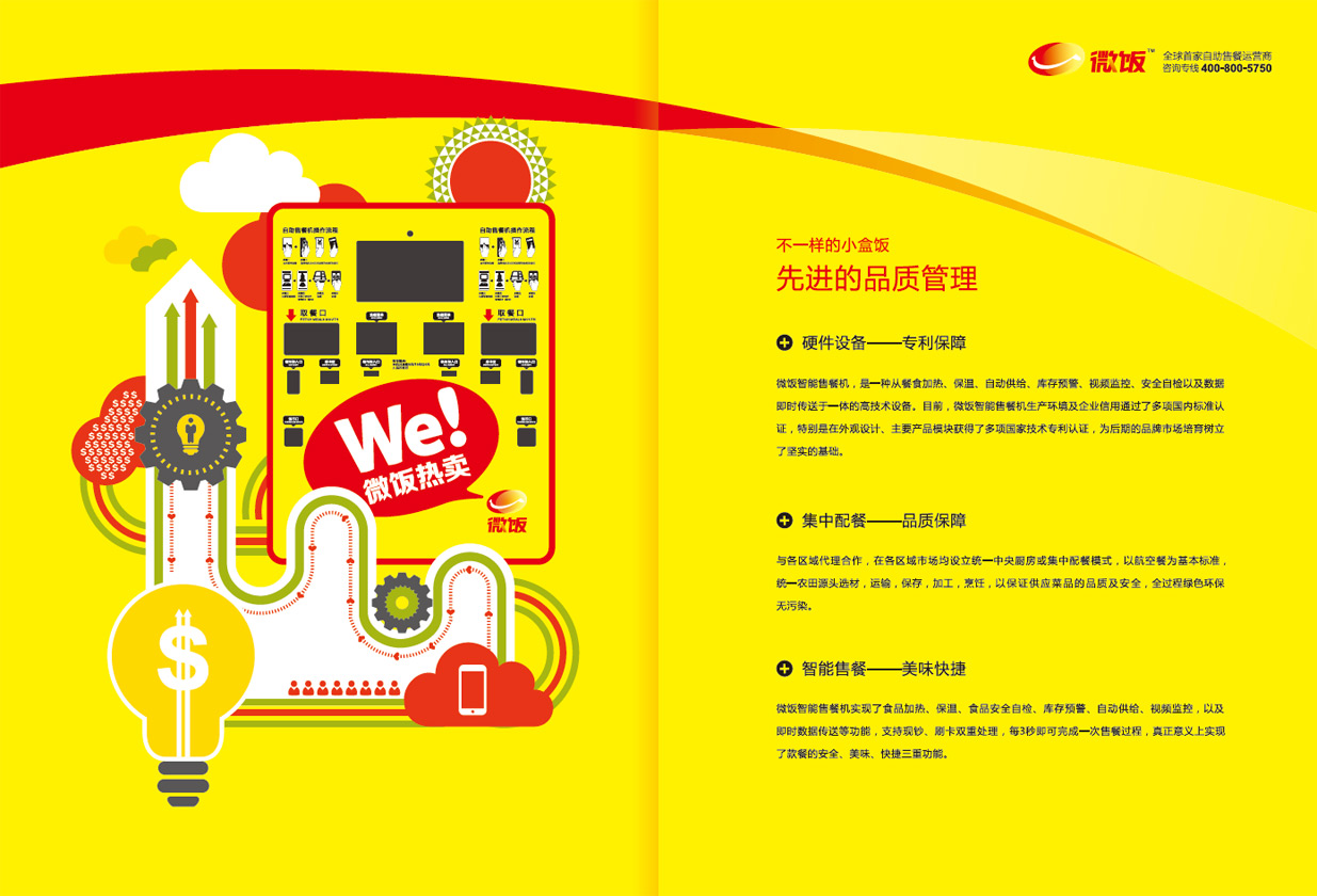 Introduction:作為全球首家自助售餐機(jī),全新的產(chǎn)品概念本身自帶話題,在對品牌進(jìn)行整體塑造時,我們確立了以色彩建立消費識別,強(qiáng)化品牌記憶,無論網(wǎng)點布設(shè)于任何區(qū)域都能引人注目,僅這一點上就可以起到小設(shè)計大傳播的設(shè)計理念。