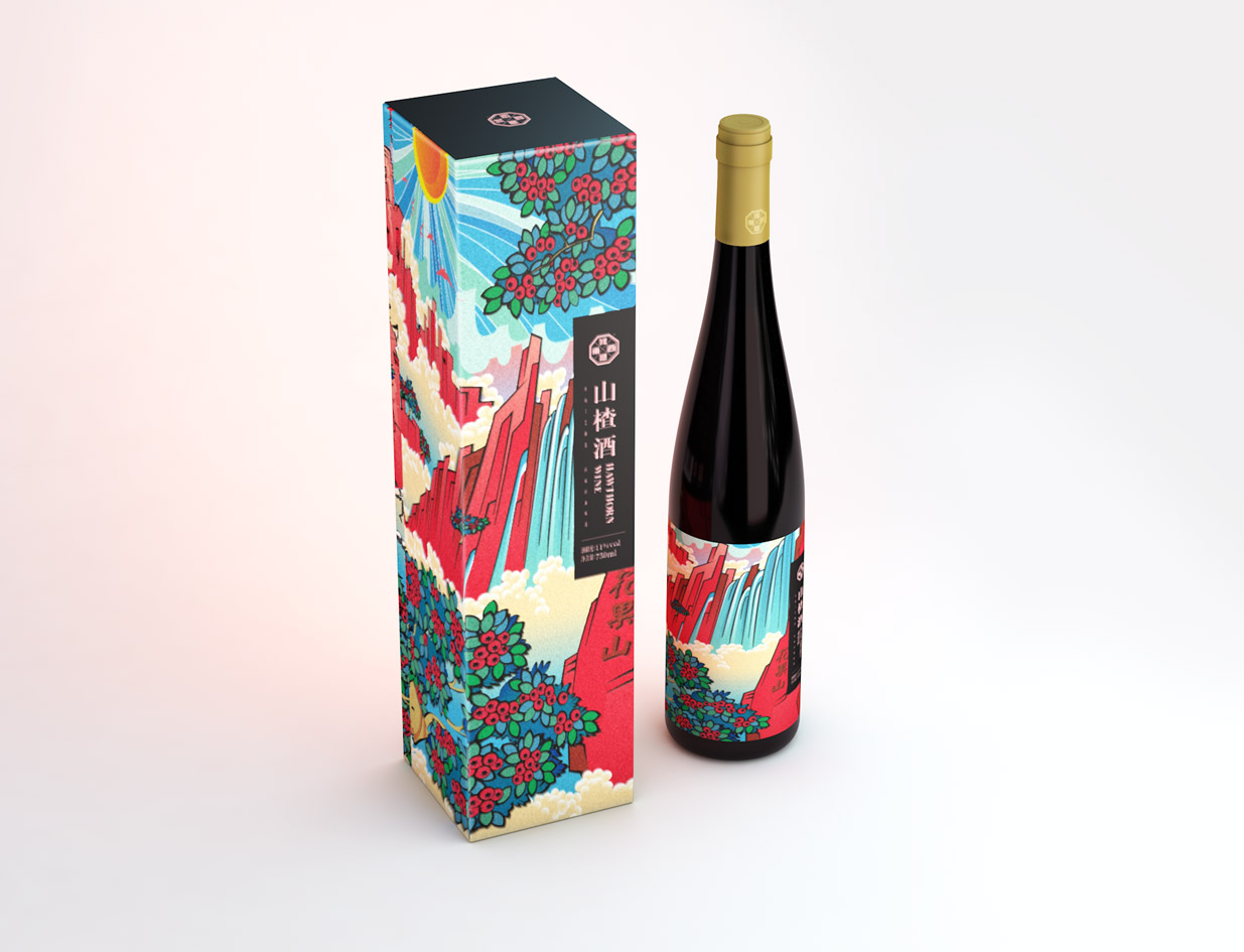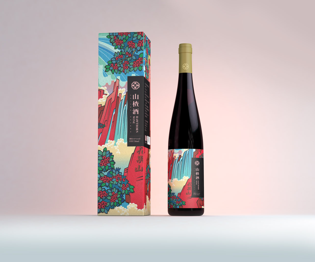 Introduction:山楂酒包裝設(shè)計采用插畫風(fēng)格,通過描繪漫山遍野的山楂樹,為消費者呈現(xiàn)出一個充滿詩意和神秘色彩的世界。我們的設(shè)計靈感來源于中國的傳統(tǒng)文化和神話傳說,通過獨特的視覺效果,讓消費者在品嘗山楂酒的同時,仿佛置身于花果山之中。營造出一種濃郁的中國風(fēng)情。