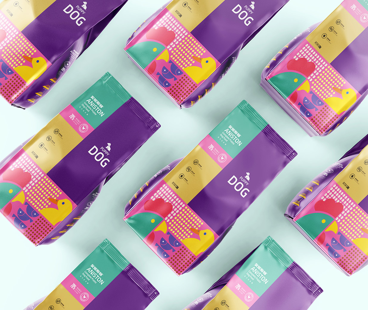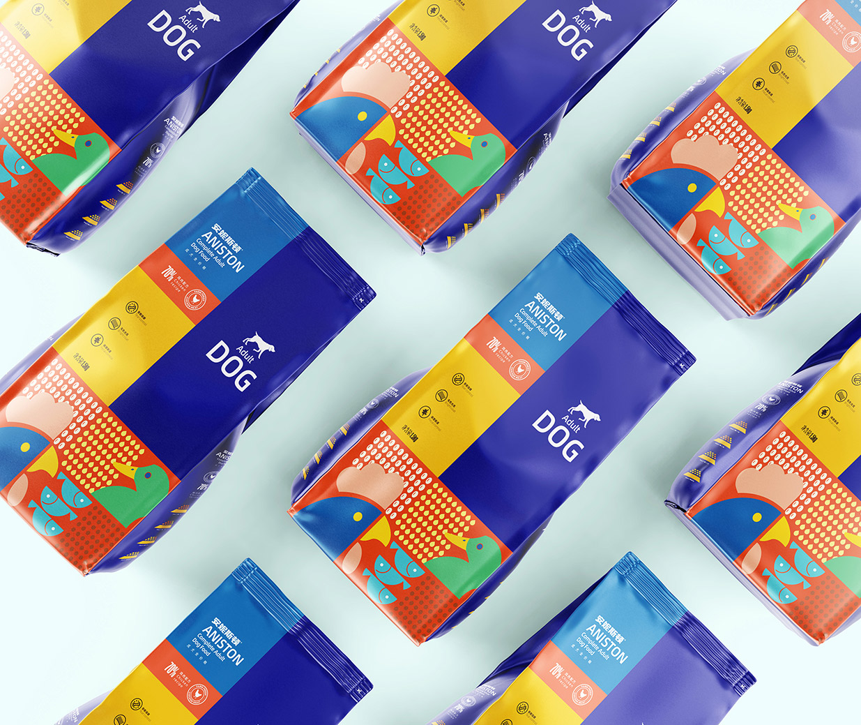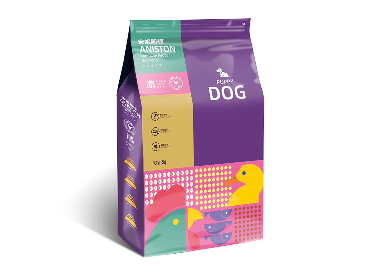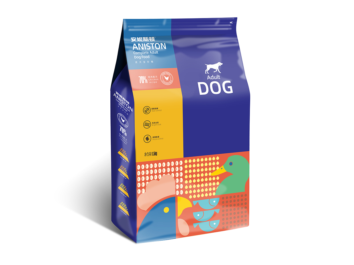 Introduction:安妮斯頓狗糧專為幼犬和成犬精心打造。包裝設(shè)計(jì)采用扁平化插畫風(fēng)格,簡潔明快,凸顯食材搭配之美,令人一眼即識(shí)。