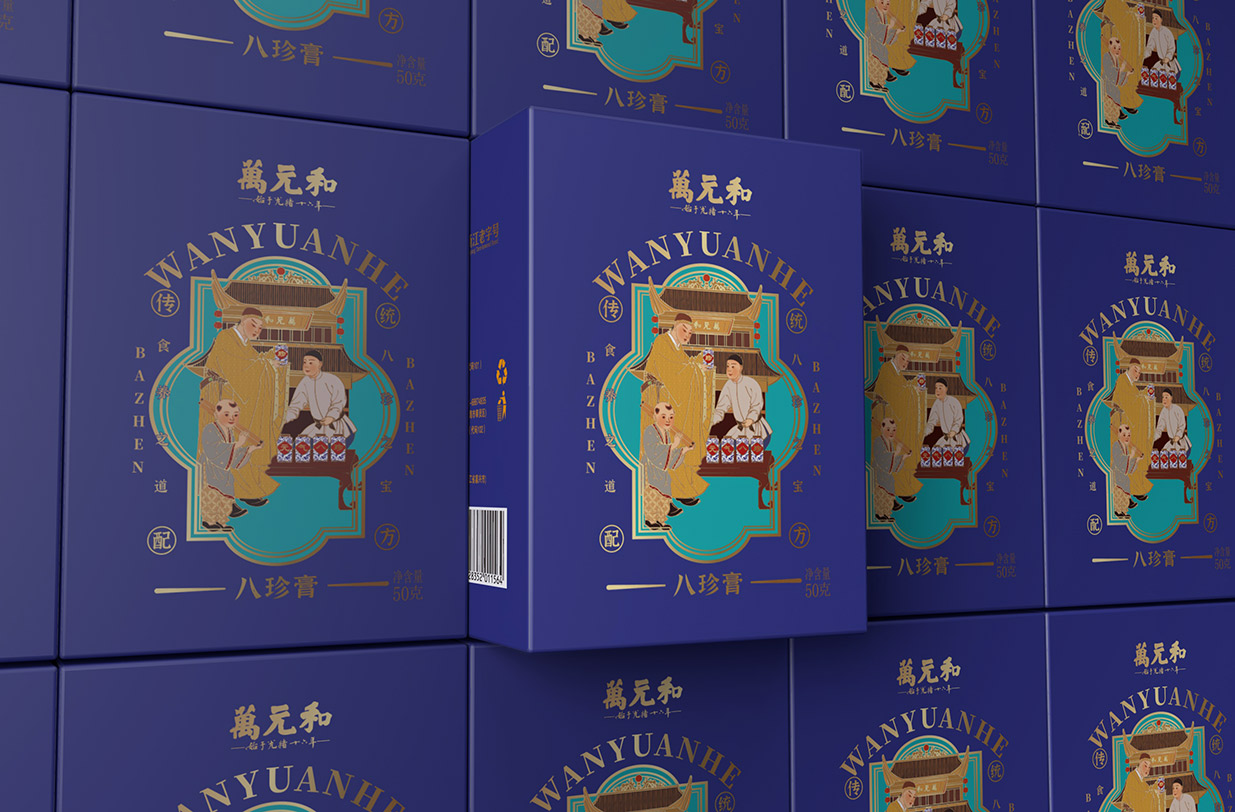 Introduction:萬元和八珍膏,百年傳承,歷史悠久。自清光緒年間創(chuàng)立以來,一直致力于傳承和發(fā)揚中華傳統(tǒng)食養(yǎng)文化。通過包裝設(shè)計展現(xiàn)了品牌的歷史底蘊和文化內(nèi)涵。